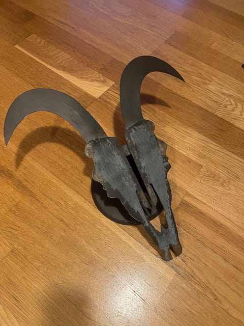 Metallskulptur i form av djurhuvud