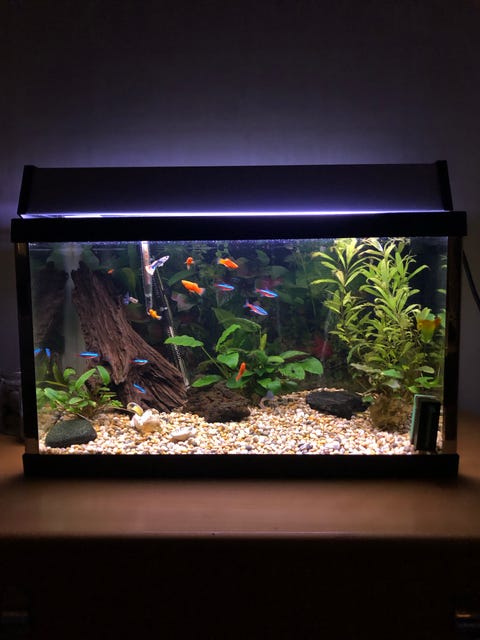 Ett akvarium kan vara en fantastisk del av ditt hem, en älskad hobby och något hela familjen kan njuta av tillsammans. Ett bra akvarium kan enkelt hittas begagnat. När du tittar på annonserna, tänk på storleken och var du vill placera det. Undvik till exempel direkt solljus för att hålla fiskarna glada.