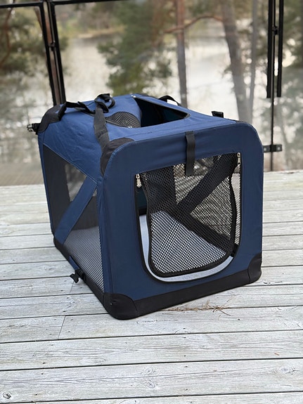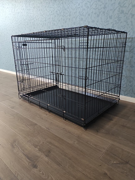 XXL gedigen hoppfällbar hundbur i metall 122x74x84 cm med ortopedisk dyna