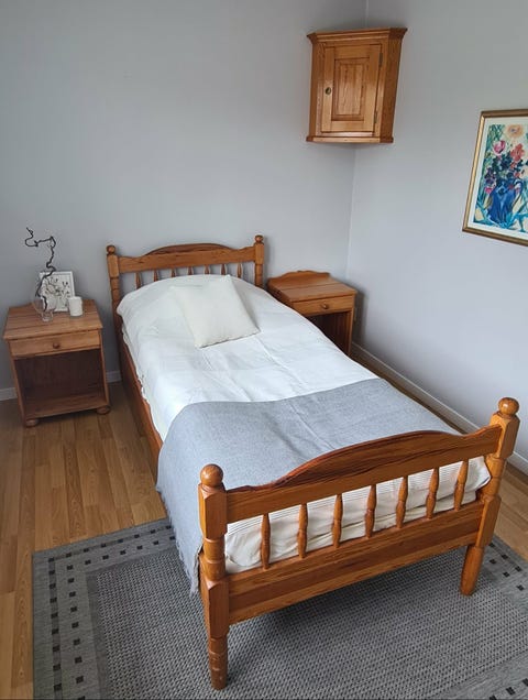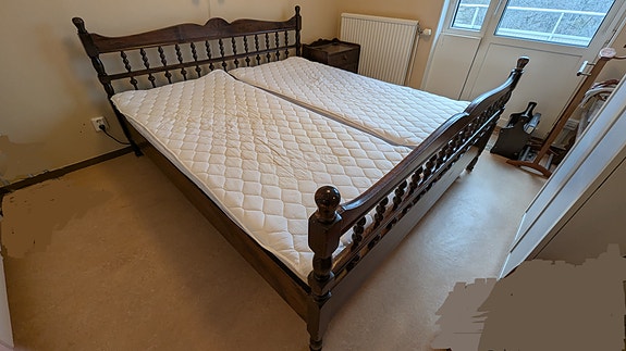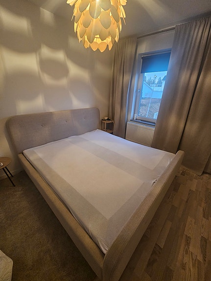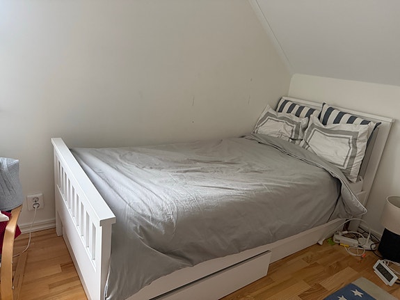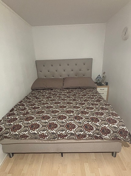 Dubbelsäng med ett sängbord bortskänkes