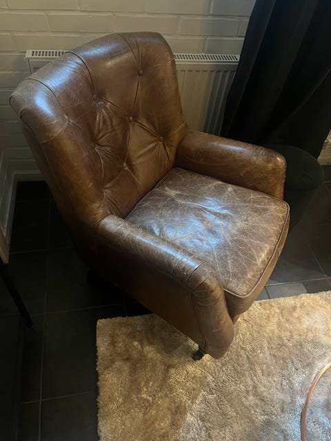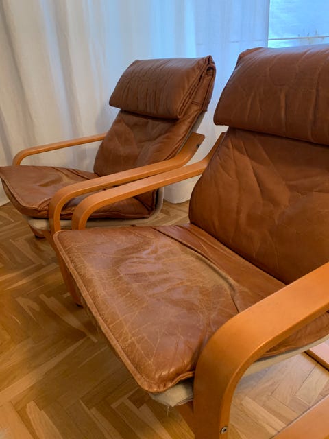 Skinnfåtölj, retro, 2st, bortskänkes!!