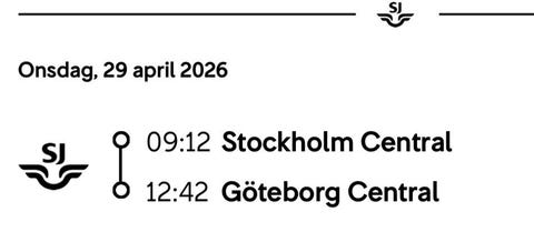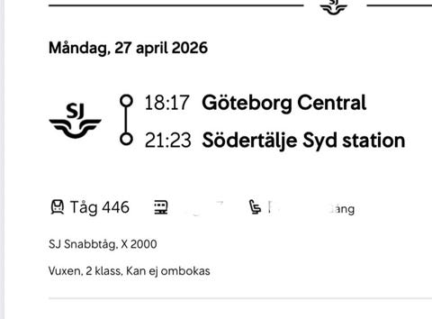 300 krSJ tågbiljett Göteborg Centralstation - Södertälje Syd. 27 AprilÖjersjö14 aprLägg till i favoriter.