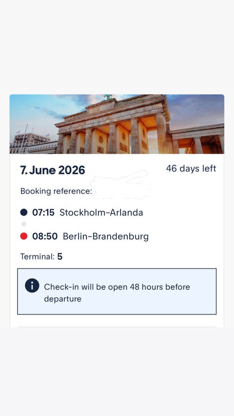 200 krFlygbiljett Stockholm-Arlanda till Berlin-Brandenburg 7 juni 2026Bro19 timLägg till i favoriter.