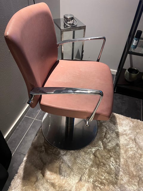 450 krOkänd modell stol rosa tyg med kromade armstöd och rund metallbasTanumshede3 timLägg till i favoriter.