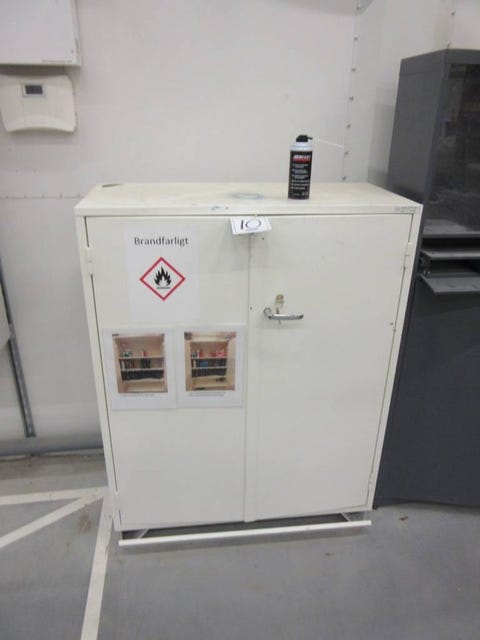 Låsbart plåtskåp inklusive innehåll