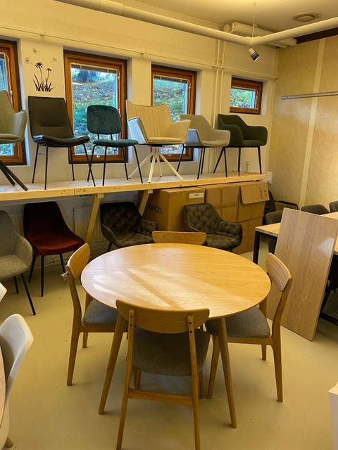 Vi handlar med varor från större leverantörer (alla slags trämöbler)som har använts i utställning för fotografering m.m. men även varuprover som ibland är unika samt vissa partier med smärre skönhetsfel . Våra priser ligger ca 30-50 % under marknadspris. Det mesta av våra varor kan hämtas omg / levereras, med reservation att vissa varor kan vara slutsålda. Vi har öppet lördagar och söndagar 12-15 Mvh Ewa och Per