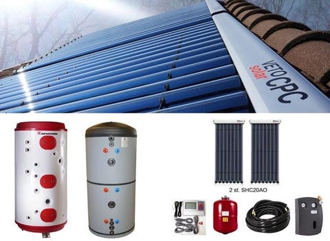 Sist men inte minst har vi en av marknadens mest effektiva SOLFÅNGARE - VETO Solar. En vakuumrörssolfångade SHC med CPC - som i det närmaste fördubblar effekten. Med inbyggt överhettningsskydd.