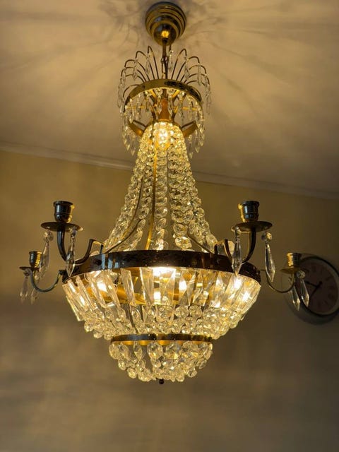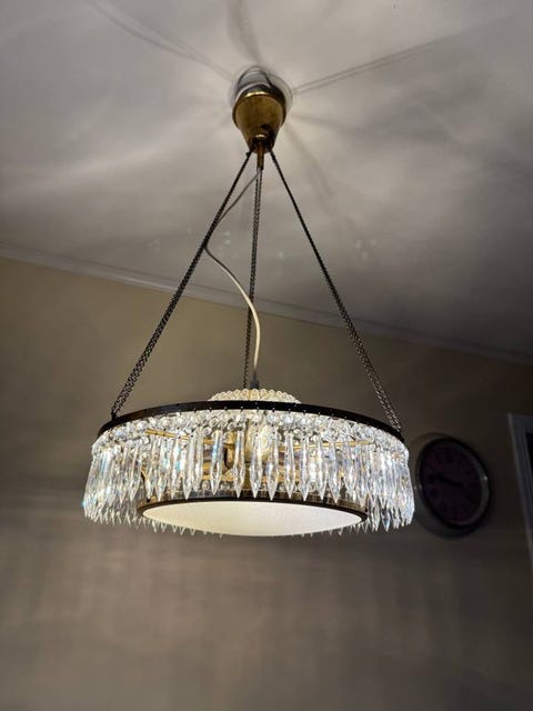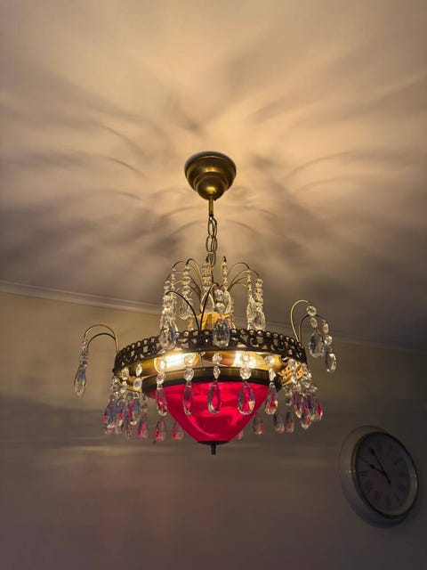 2 500 krFin kristallkrona i gustaviansk stil med kupa i rött glasÅkers Styckebruk23 nov 2025Mirek - AntikFynd M&A