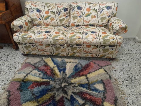 Klassisk soffa med vackert mönstrat tyg – charmig och bekväm