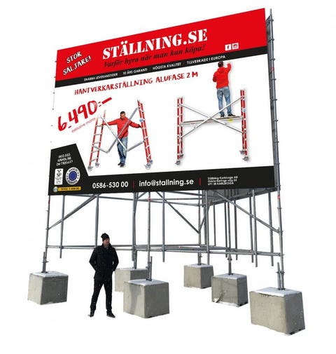 Vår affärsidé är lättbyggda och säkra byggställningar till oslagbara priser. Vi säljer byggställningar för både inom- och utomhusbruk, stort som litet, till både företag och privatpersoner - alltid med 10 års garanti! Vårt stora lager möjliggör snabba leveranser, alltid till bra pris - jämför oss gärna. Alla våra ställningar är förstås testade och godkända av Arbetsmiljöverket och RISE. Vi är störst i Sverige men fortsätter alltid att sträva framåt. Varmt välkomna till vår hemsida stallning.se